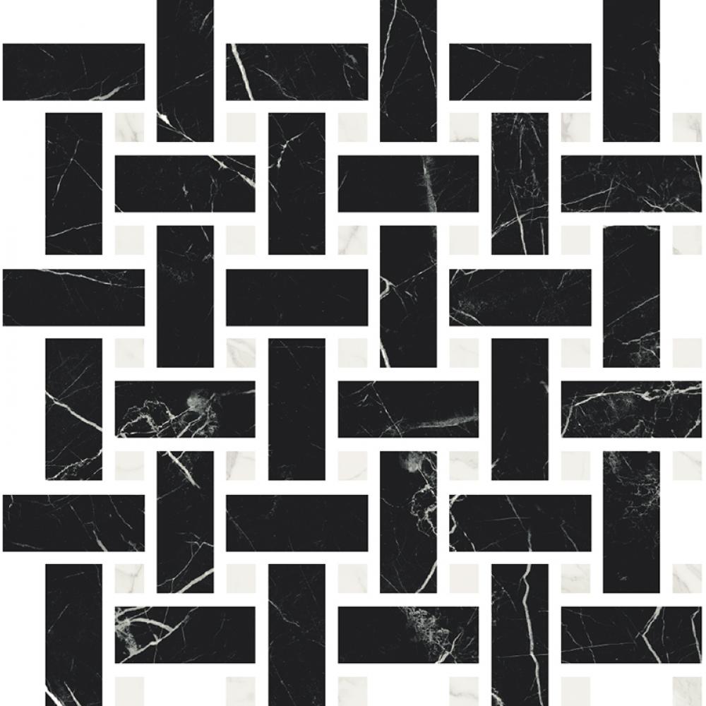 FI Elegantná mozaiková dlaždica s mramorovým vzorom, čierna a biela