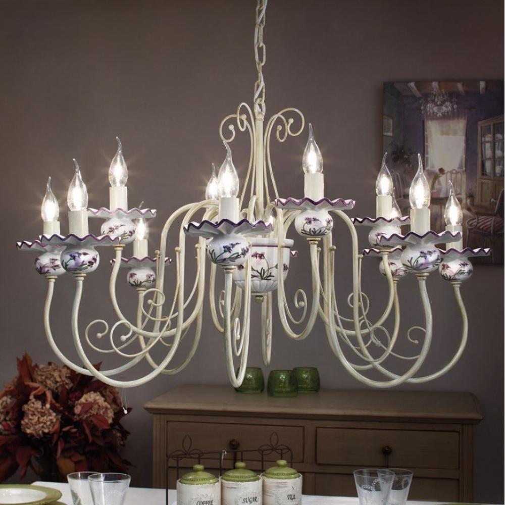 Klasická, ručne maľovaná keramická lustra, ktorá elegantne zapadá do provensálskych, mestských, rustikálnych, country priestorov.