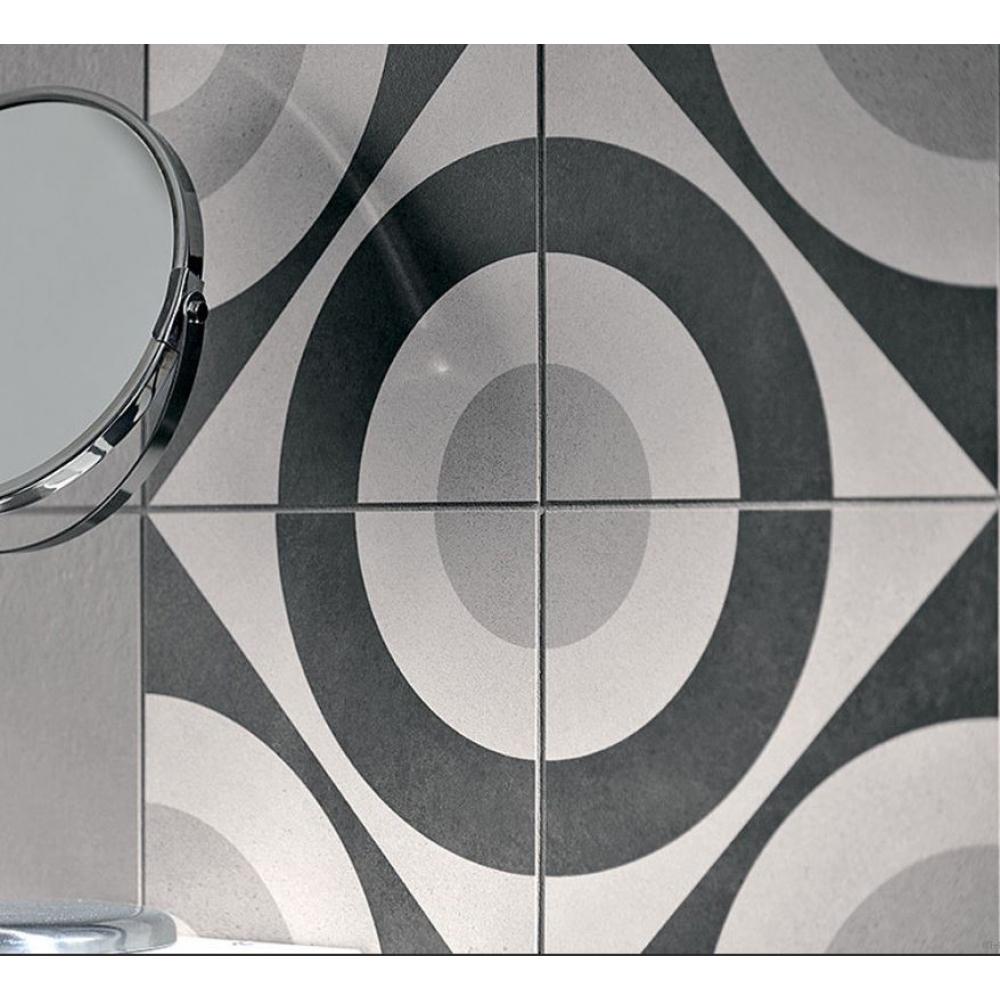 FI Dlažba s efektom cementu, čierno-biela, kruhový vzor, gres, 20x20cm