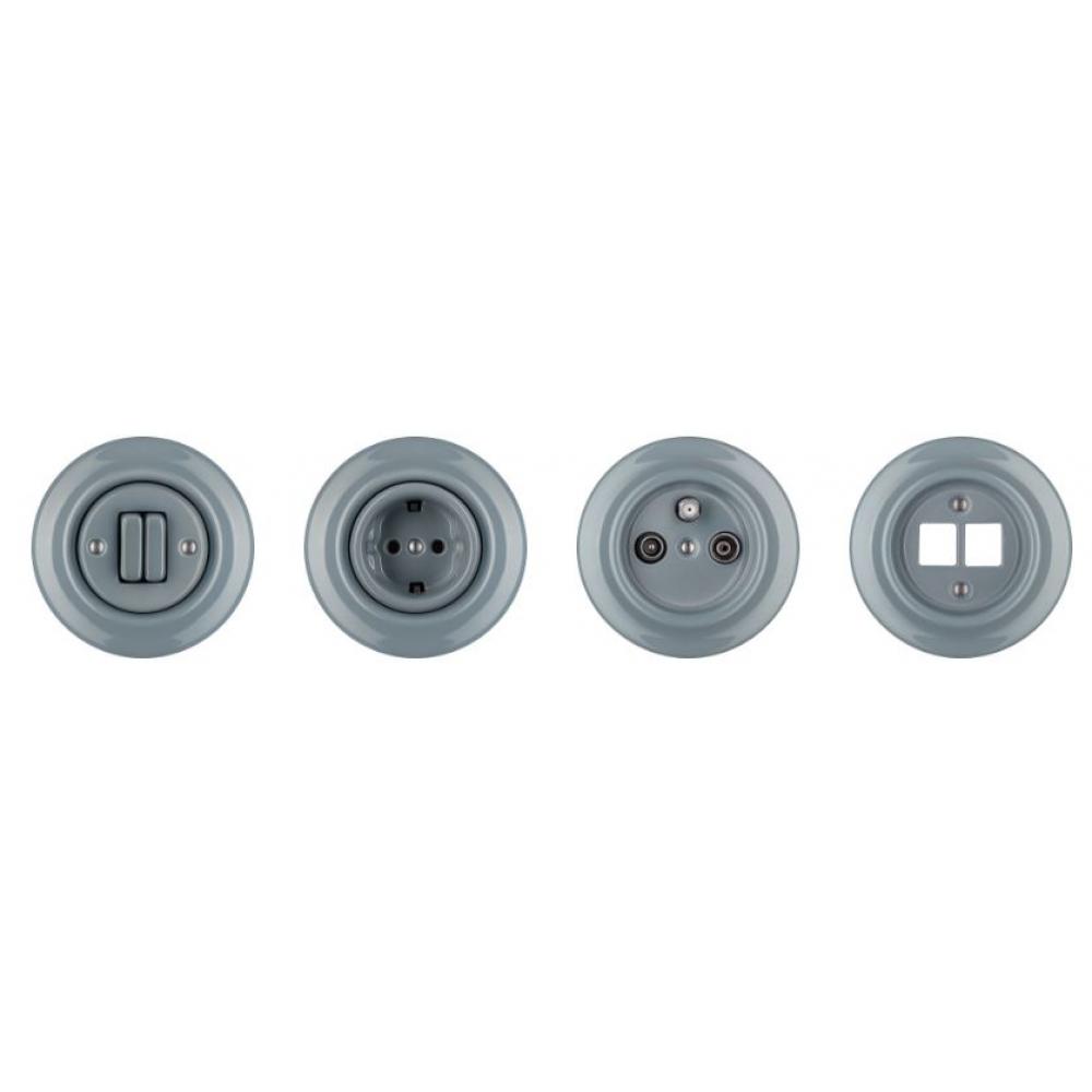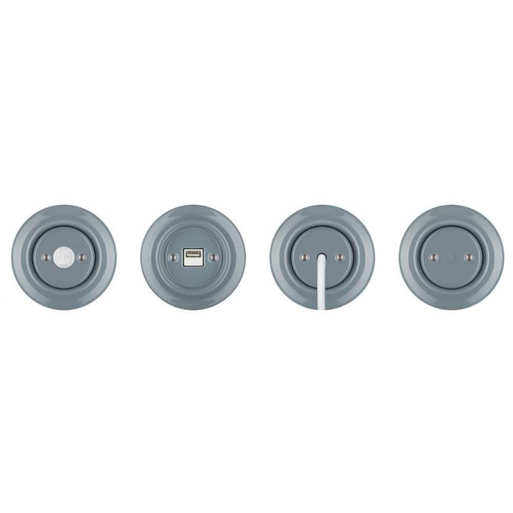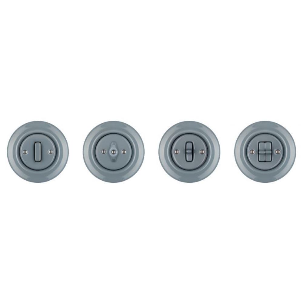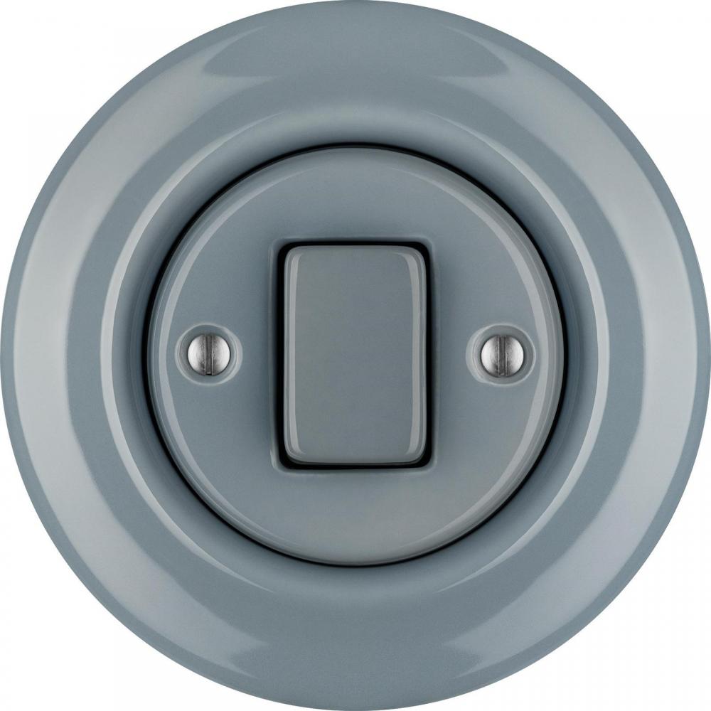 Prepracovaný retro elektrický vypínač v modro sivej farbe. Vyrobený z tradičného porcelánu. Prachotesný.