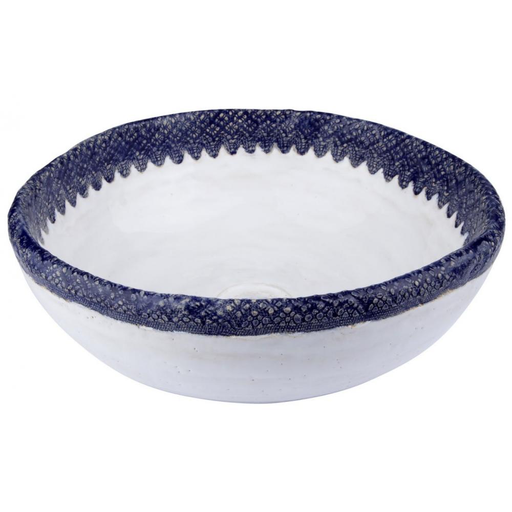 Kvalitné, ručne opracované keramické umývadlo. Jeho modrý vzor je očarujúci, oživí kúpeľňu alebo kuchyňu.