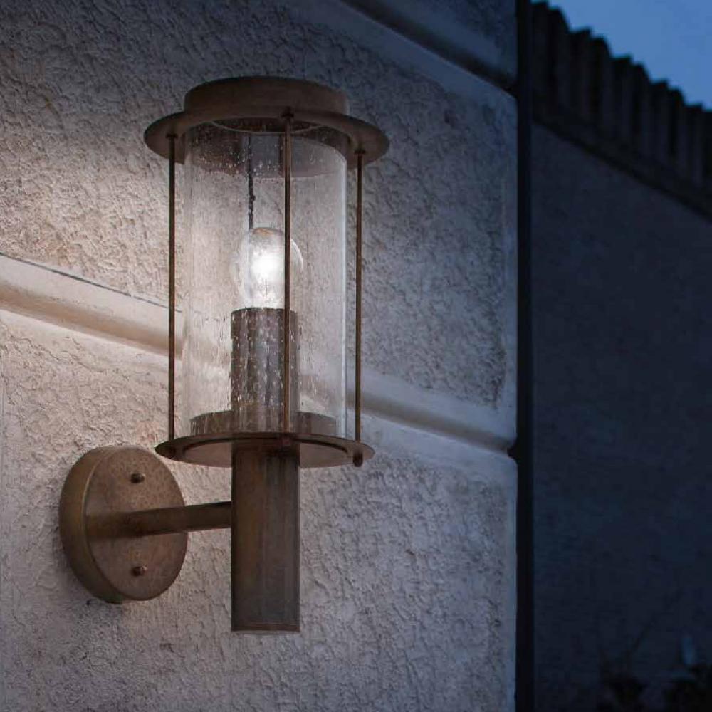 Kombinácia medi a červenej medi vonkajšieho nástenného svietidla.