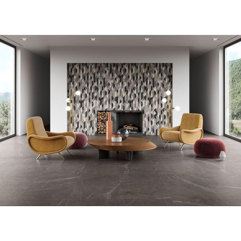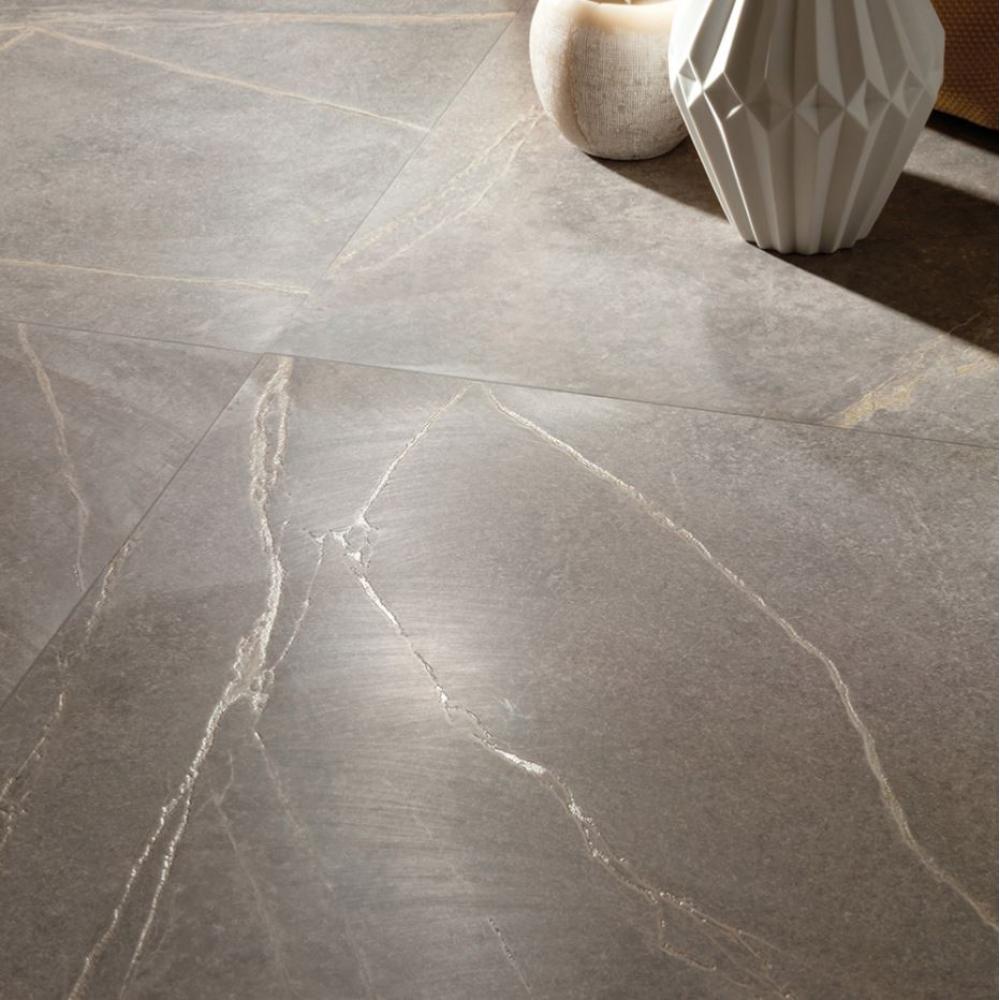Rektifikovaná, obrúsená, mrazuvzdorná podlahová krytina, ktorá 100% napodobňuje povrch prírodného kameňa. Jej žilkovanie je originálne, digitálna verzia kameňa z prírody. Každá doska je iná, žilkovanie dodáva krytine prirodzenosť a matný povrch decentnú eleganciu.