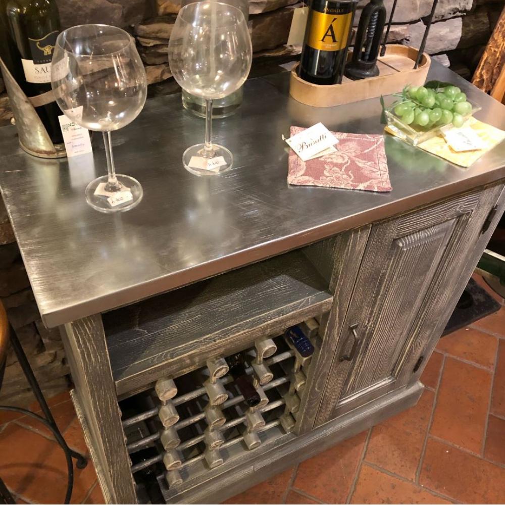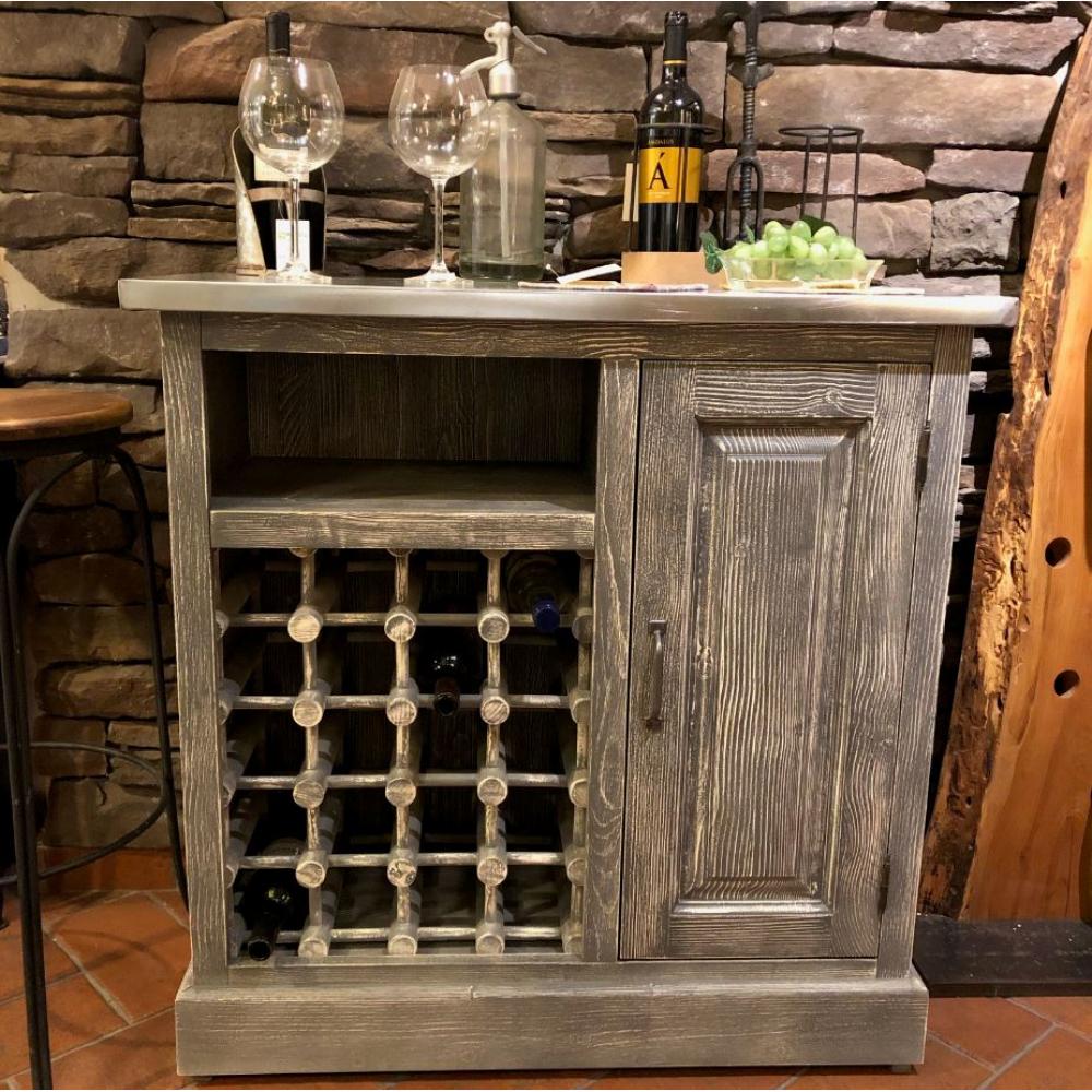 LM Provansalský štýl, masívna drevená vinotéka s cínovým barovým pultom / NA SKLADE (dostupné v rôznych farbách dreva)