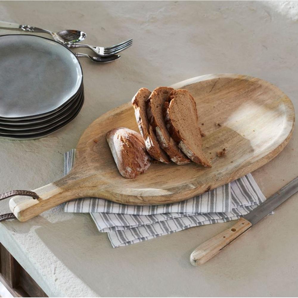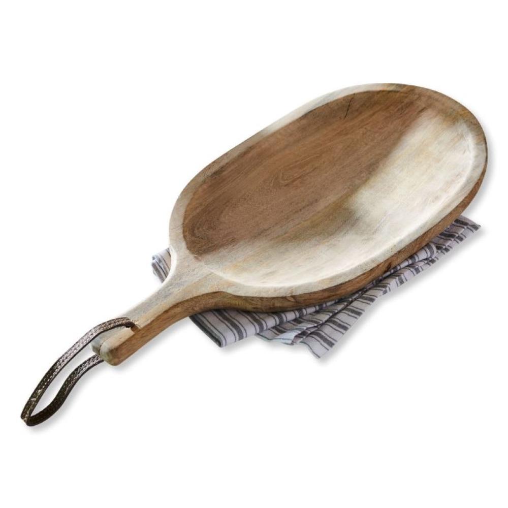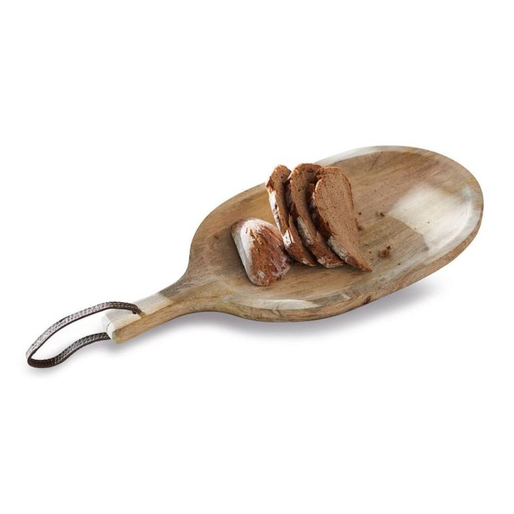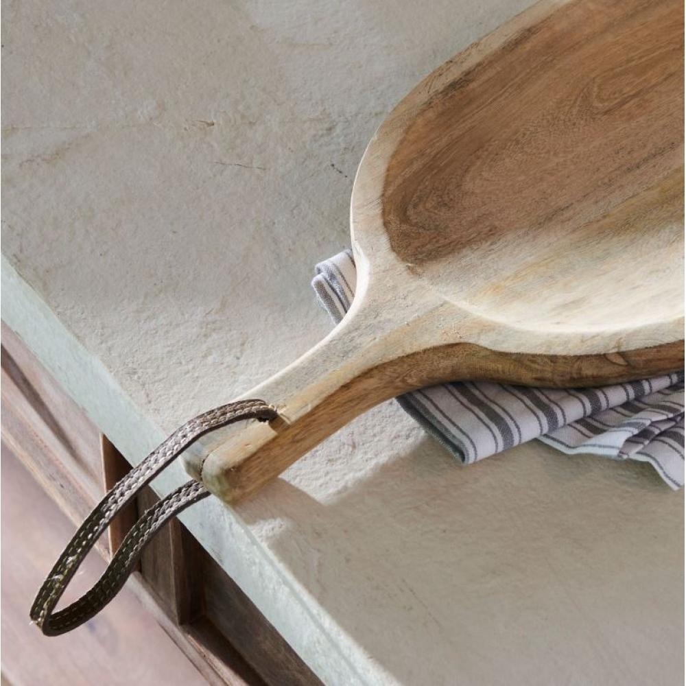 LB Antik štýl lopaty na múku z masívneho mangového dreva s bivalím koženým háčikom / 50x20x3 cm
